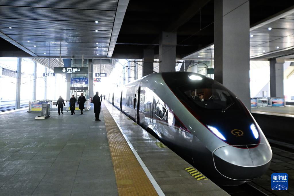 1月11日,复兴号智能动车组列车驶入西宁站。