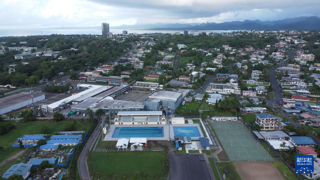这是1月12日在斐济苏瓦航拍的中方援建翻修的室外游泳池。新华社发(桑钦龙摄)