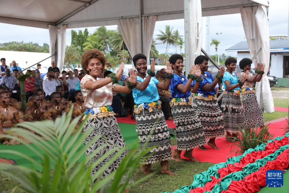 1月12日,表演者在斐济苏瓦的活动现场跳传统舞蹈。新华社发(桑钦龙摄)