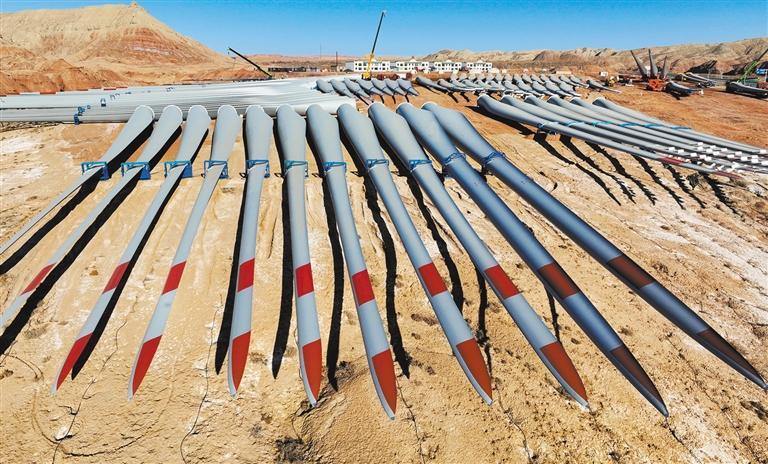 1月6日,甘肃张掖新能源基地,待装的风机叶片有序排列。成 林摄(中经视觉)