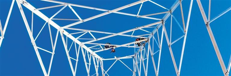 1月5日,内蒙古鄂尔多斯鄂托克前旗,电力工人在安装电塔。王 正摄(中经视觉)