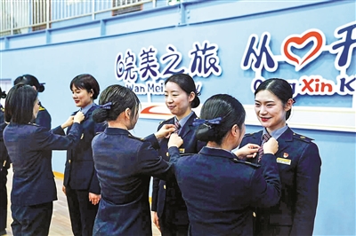 日前,铁路客运服务人员在合肥火车站进行服务礼仪培训