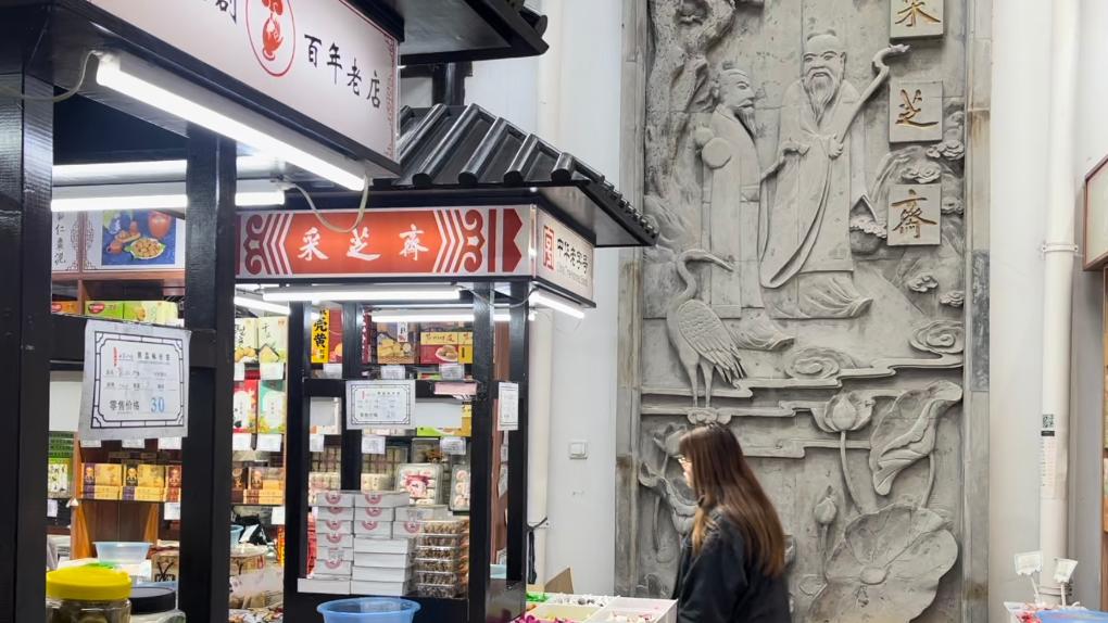 顾客在苏州山塘街上的采芝斋挑选商品。新华社记者刘羽佳 摄