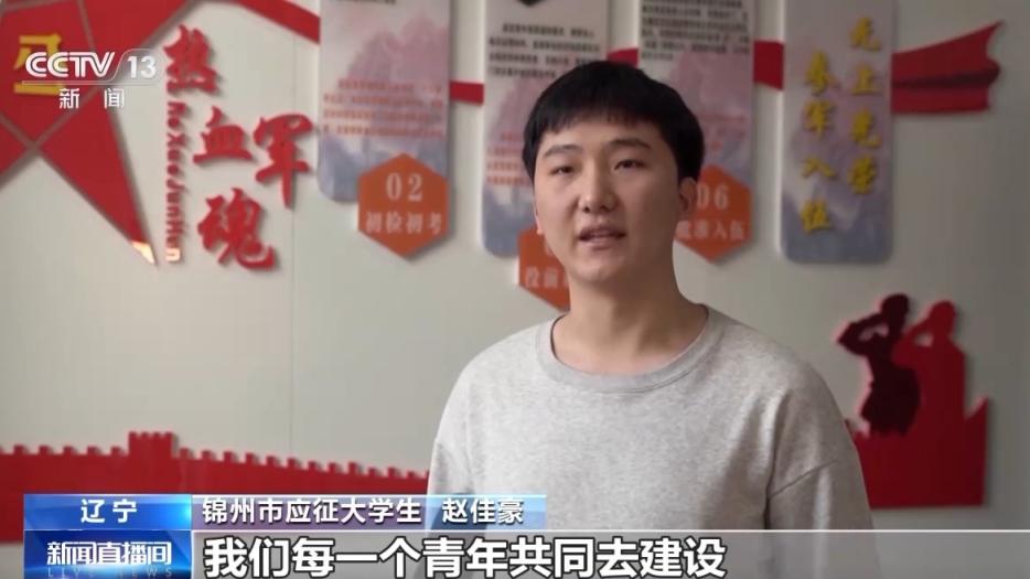 辽宁锦州市应征大学生 赵佳豪:富强的国家更需要强大的国防,强大的国防更离不开我们每一个青年共同去建设,投身军旅,既能锻炼自己的综合素质,也为祖国贡献了力量。
