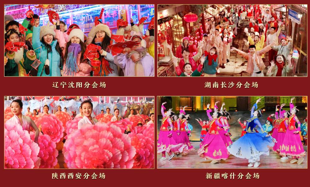 在沈阳分会场,东北曲艺与当代风尚的创意碰撞;在长沙分会场,青春之歌赞颂“不夜星城”的昂扬风貌;在西安分会场,国潮表演融合陕派说唱、创意水袖、鼓乐交响等艺术形式;在喀什分会场,器乐展示、情景演绎等表演奏响中华民族一家亲的乐章。