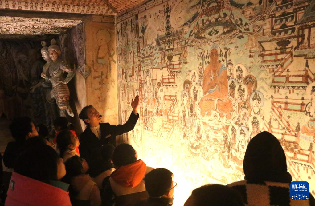 1月18日,研学团队学员在甘肃省敦煌市博物馆参观文物展。随着寒假的到来,甘肃省敦煌市迎来文化研学热。新华社发(张晓亮 摄)