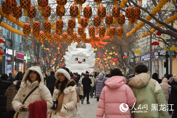 哈尔滨中央大街人头攒动。人民网 徐成龙摄