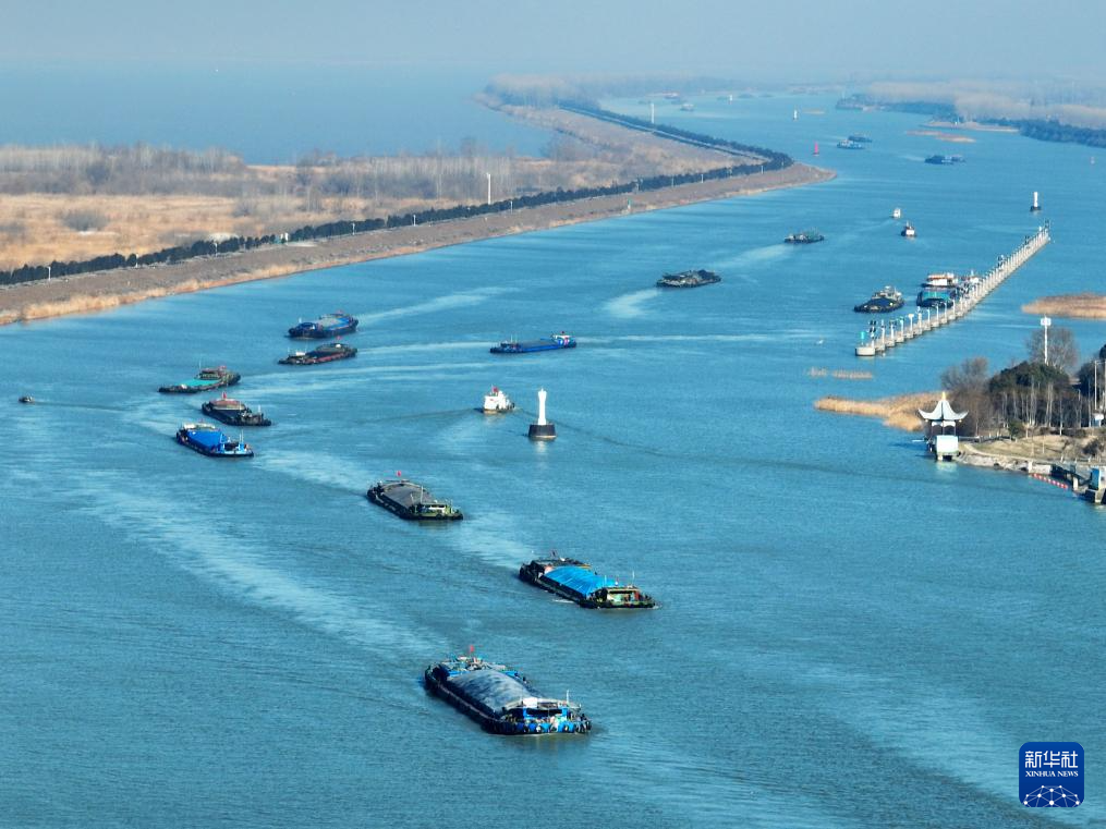 进入冬季,煤炭等物资需求量增加,京杭大运河江苏扬州段上船只往来如梭。一艘艘装载着煤炭、建材等货物的船舶在航道上有序航行,运河上一派繁忙景象。