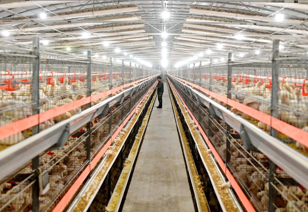 2023年12月16日,河北省滦州市滦城街道办事处杨家院村一家肉鸡养殖合作社的社员在鸡舍内工作。 新华社记者杨世尧摄