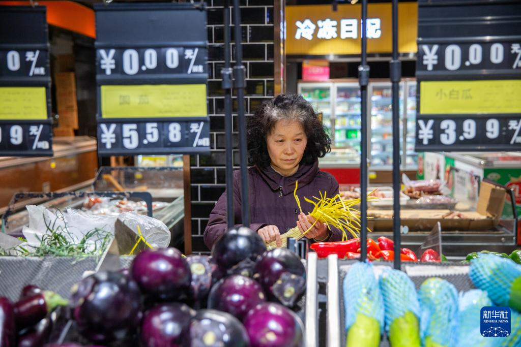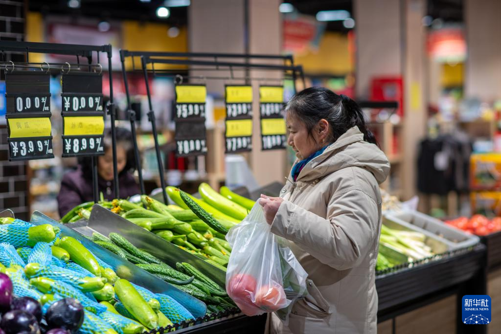 1月24日,市民在江苏省扬州市江都区某超市选购蔬菜。
