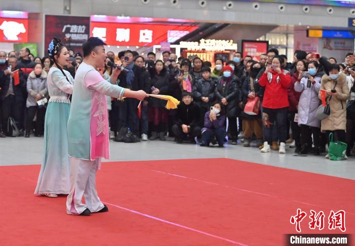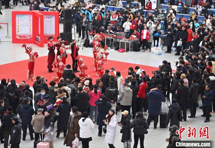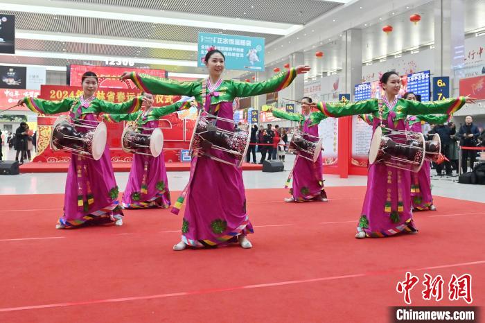 1月26日,在长春站候车大厅,长春站、沈阳铁路公安局长春公安处等多个部门联合为旅客带来了系列精彩表演, 吸引大批过往旅客驻足观看、参与。当天,2024年春运启动。2024年春运自1月26日开始至3月5日结束,为期40天。春运期间,长春站预计发送旅客341万人次,日均8.5万人次。(完)
