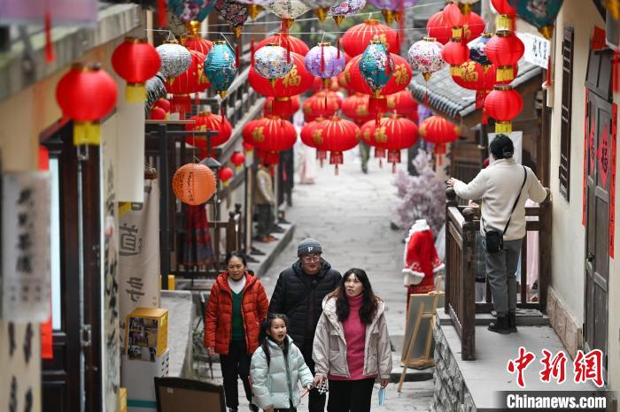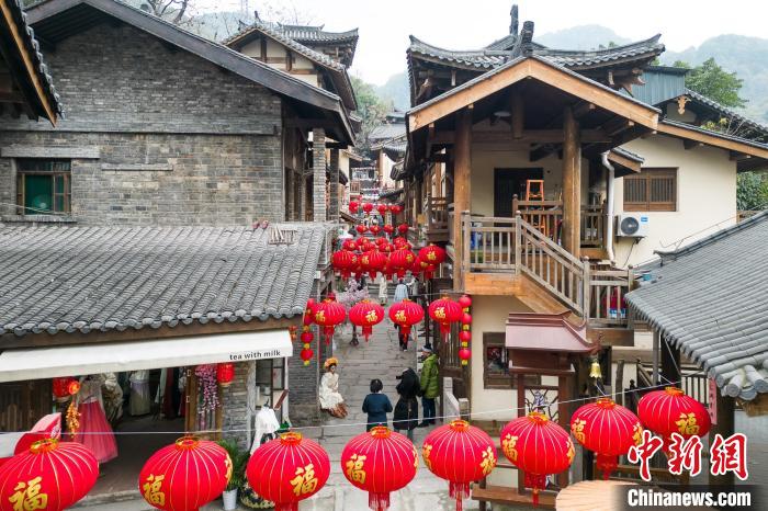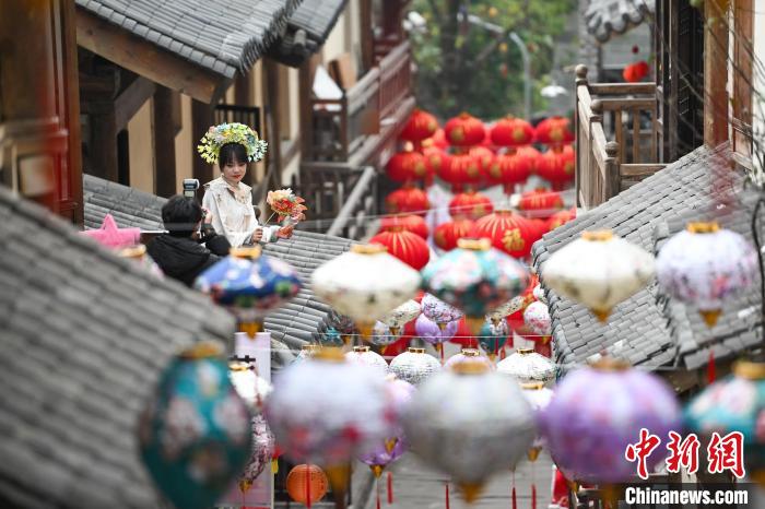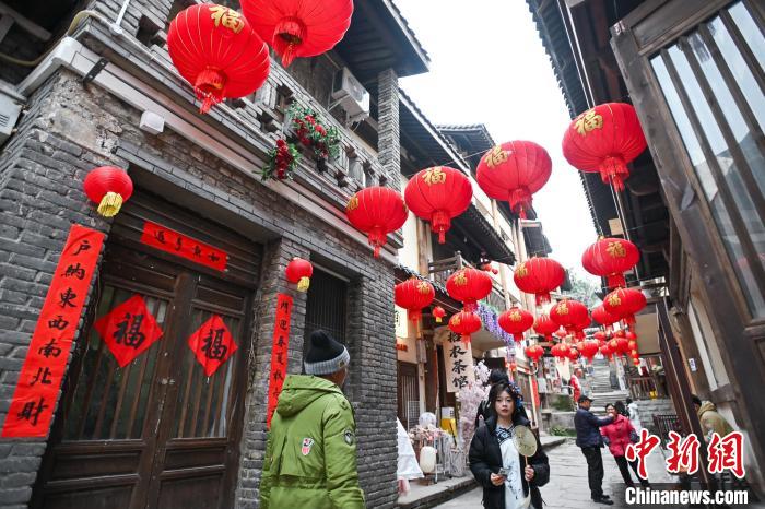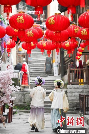 1月25日,黄葛古道张灯结彩年味浓。中新网记者 何蓬磊 摄