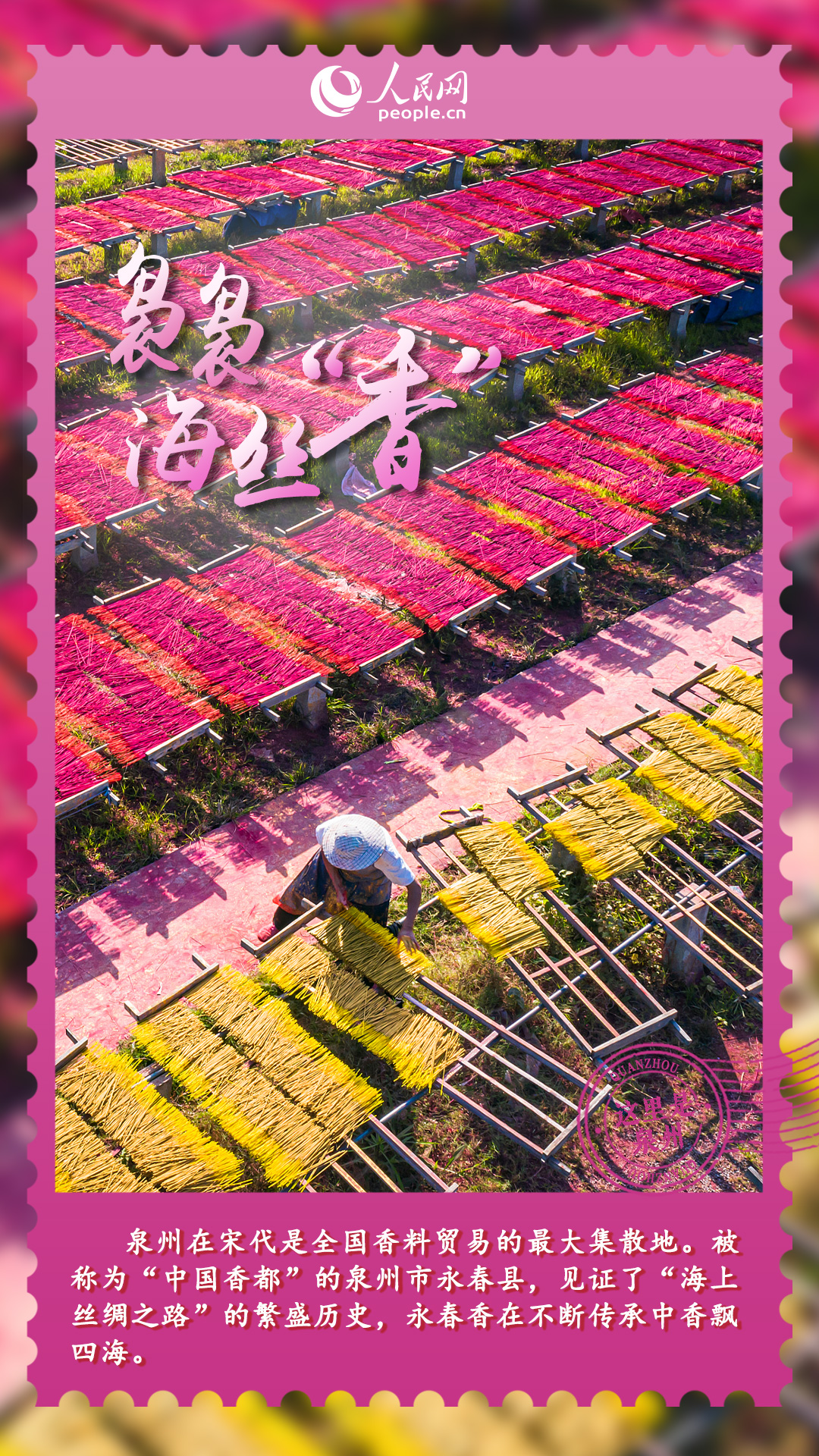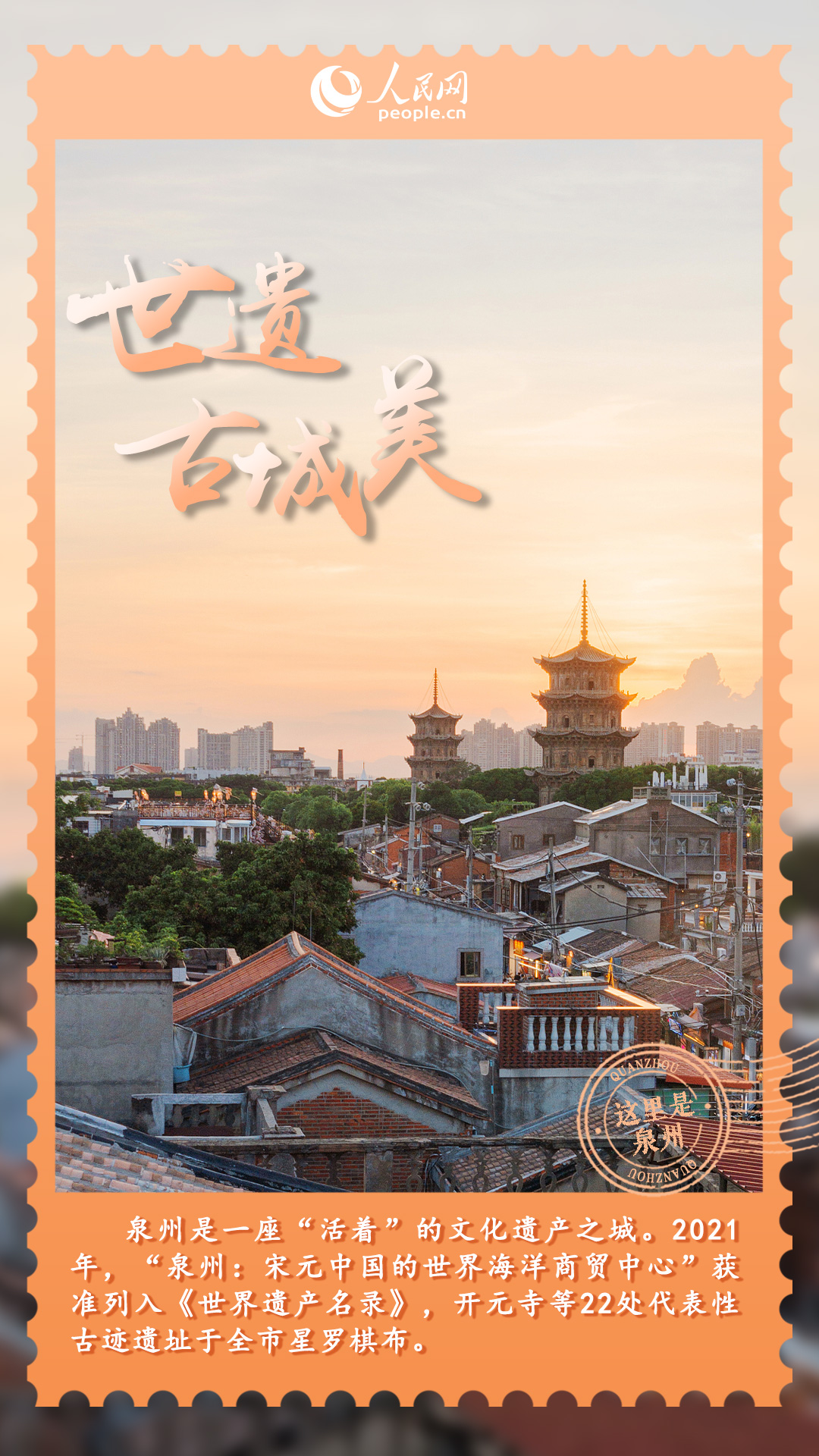 在我国东南沿海,有一座充满历史文化底蕴和现代烟火气息的世遗古城——泉州。作为宋元时期的“东方第一大港”,这里有着极为丰富的文化遗产,历经千年传承,依然熠熠生辉,焕发出新时代的魅力与光彩。花开四季簪、魅力“中国白”、袅袅海丝“香”、古厝砌红砖……一组精美海报带你领略泉州的传统文化之美,共同探寻这座城市的独特韵味。