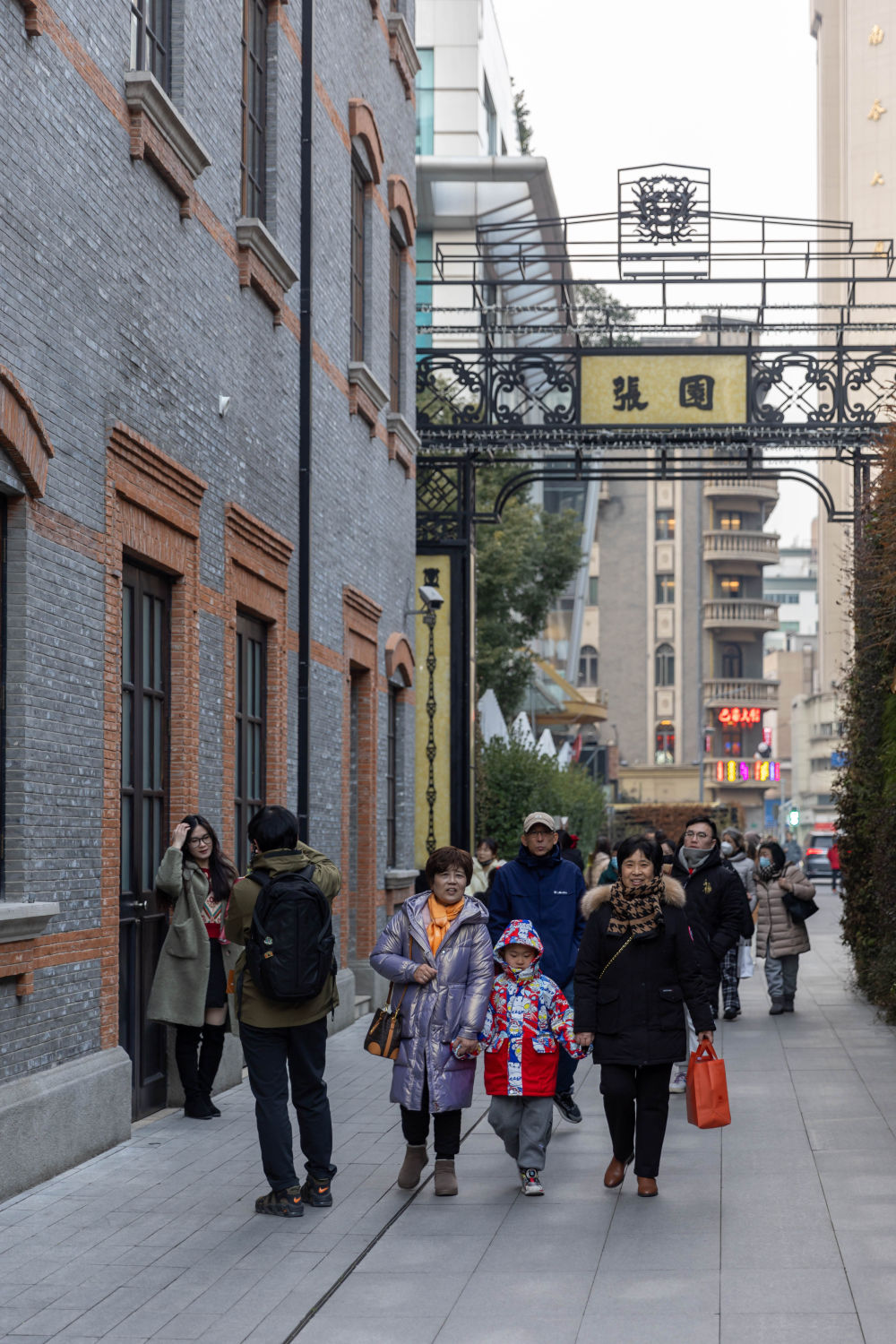 1月27日,人们走在位于上海市静安区的张园。新华社记者 王翔 摄