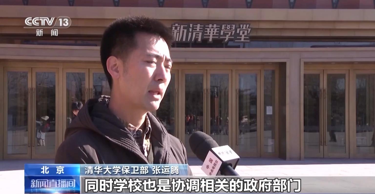 清华大学保卫部 张运腾:因为寒假的时候,学校仍然有教学科研任务在进行,到教室、实验室周边,希望能够轻音轻语,文明参观。倡导大家进入校园以后能够遵守学校的管理规定。