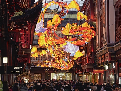 上海豫园商城观灯人潮。记者 刘颖 摄