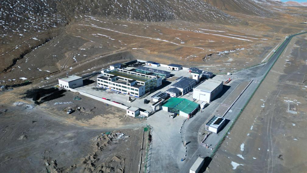 鸟瞰泉水湖检查站“第三代”综合站点(无人机照片,2023年11月8日摄)。新华社记者 聂毅 摄