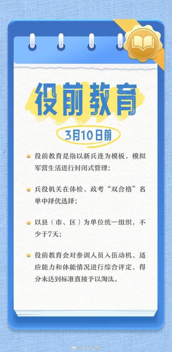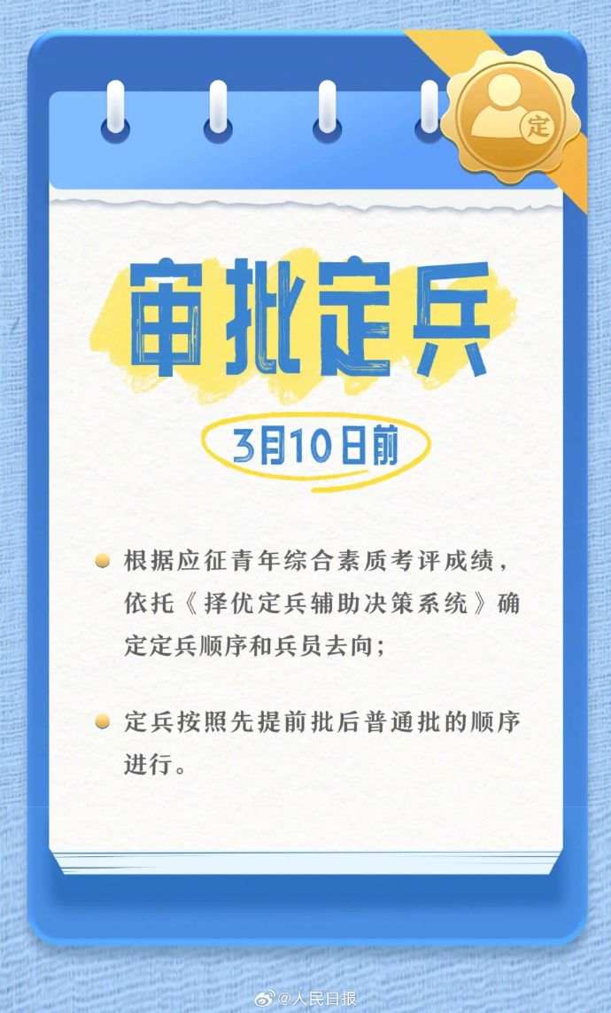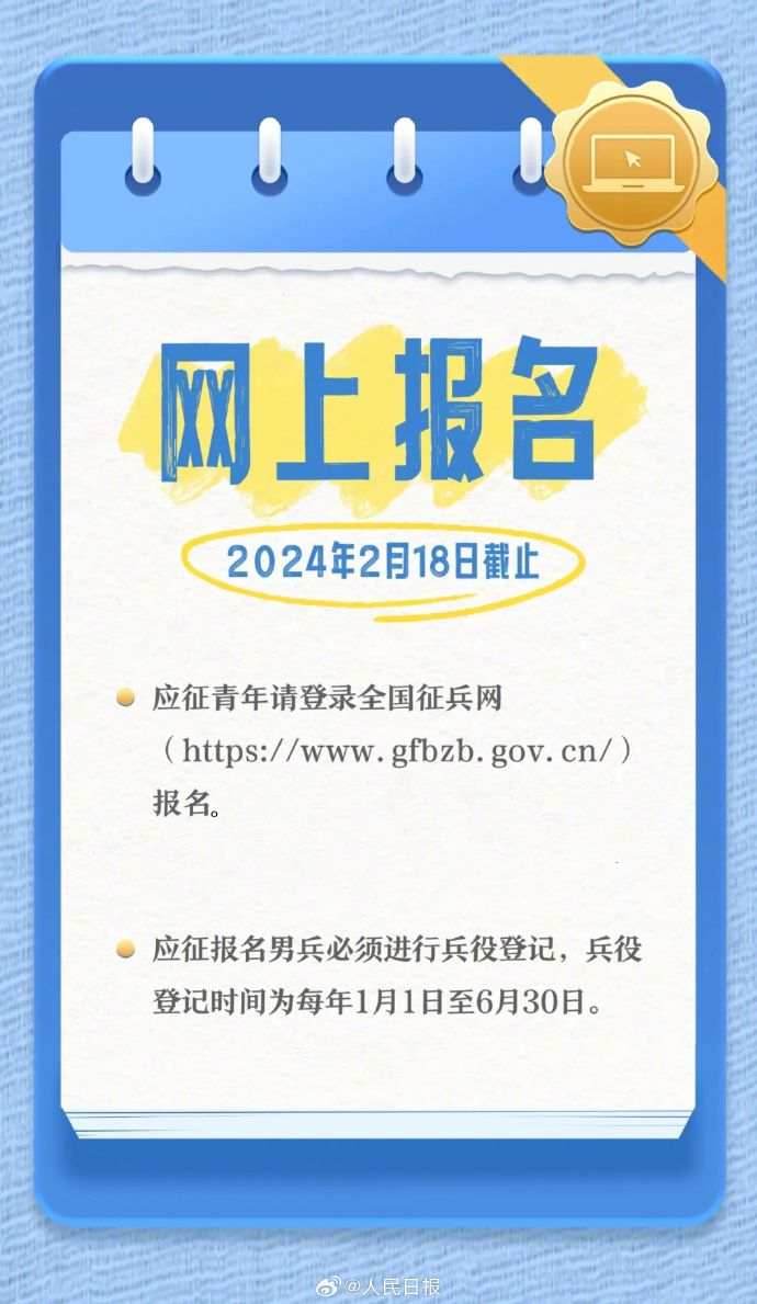 2024男兵应征网上报名2月18日截止;体格检查:3月1日前;政治考核:3月5日前……2024年上半年应征报名正在火热进行中,请查收从报名到入伍各项环节的关键时间点(男兵篇)↓↓志在军营的小伙伴们速速收藏!照着做,参军不迷路!