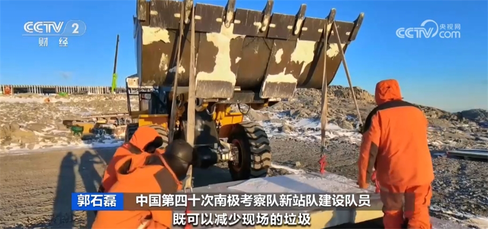 中国第四十次南极考察队新站队建设队员 郭石磊:我们这个停机坪采用的是国内加工生产、现场拼装的方式,既可以减少现场的垃圾,也可以让现场的施工速度大大提升,按计划,三到五天完成停机坪的建设。