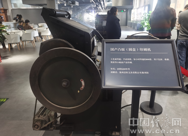 图为龙港“中国印刷城”内展示的国产凸版(圆盘)印刷机。(中国经济网记者 武晓娟/摄)