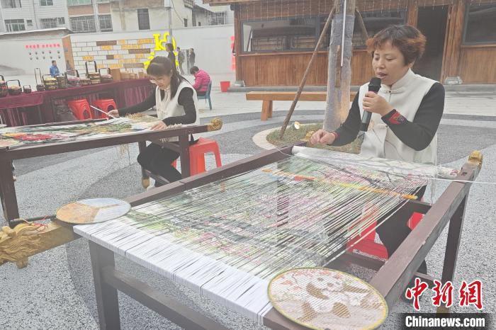 1月31日,永春纸织画省级传承人方碧双在五里古街向人们介绍纸织画。 吴冠标 摄