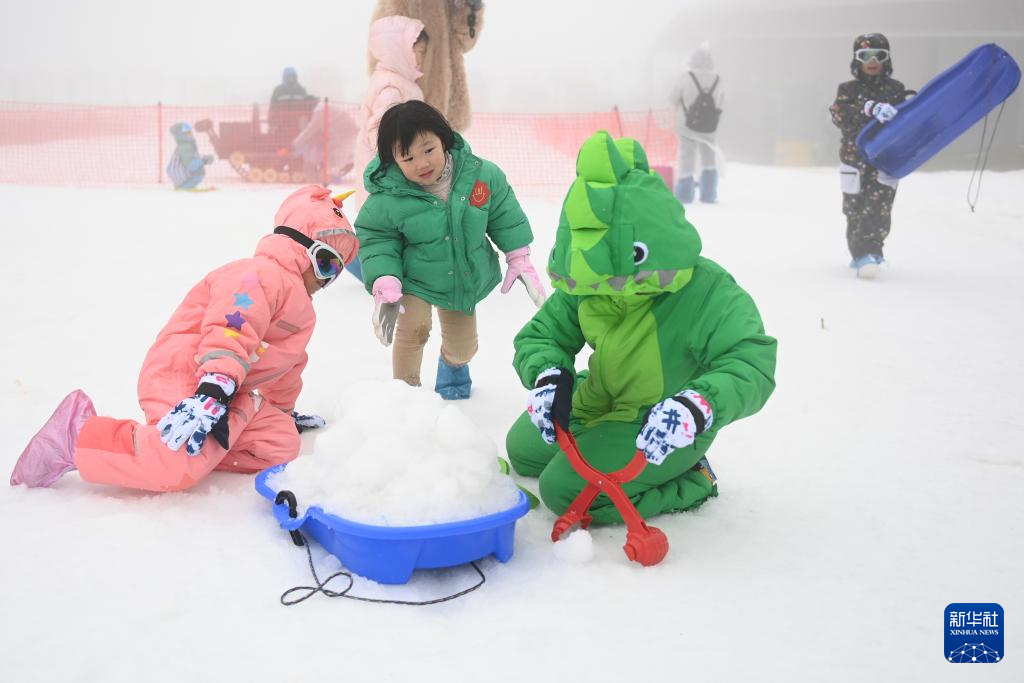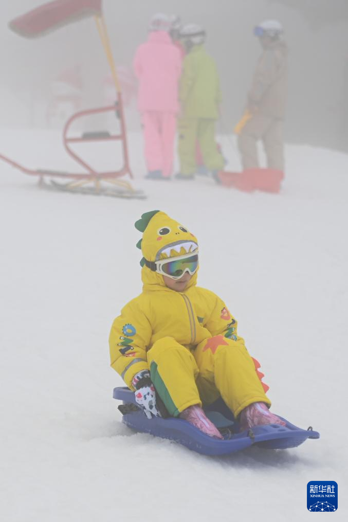 2月1日,来自福建厦门的小朋友在云上草原嬉雪乐园玩耍。新华社记者 黄宗治 摄