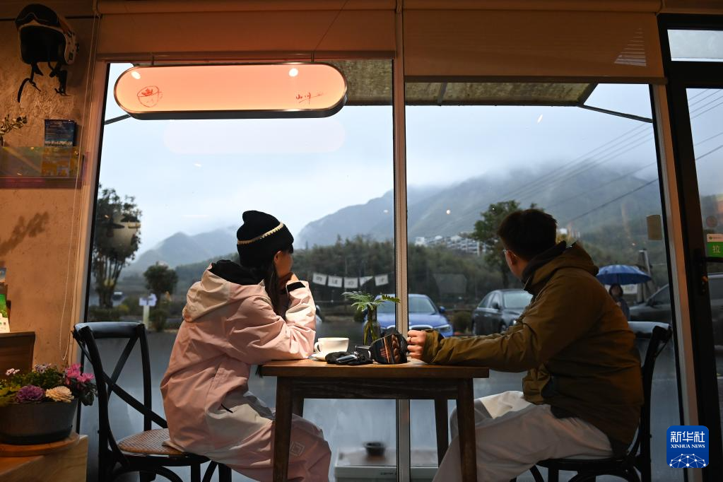 2月1日,游客在山川乡“山川日记”民宿的咖啡馆休闲。据了解,2019年金绪成将老宅改造为民宿,并经营一家咖啡馆。2024年春节期间的6间客房已被预定一空。新华社记者 黄宗治 摄