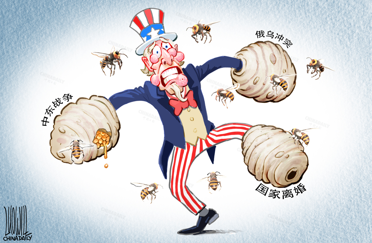 美国同时捅了三个马蜂窝。(来源:中国日报 罗杰 英文《中国日报》2024年2月2日8版)