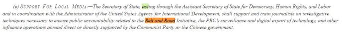 不仅如此,在法案的第136条,美国还专门制定了针对“一带一路”倡议的抹黑策略,主要就是培训一大批反华记者。