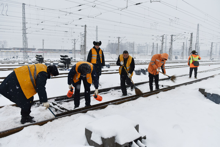 “一定要守住,绝不能让列车因积雪冰冻受影响!”位于安徽省亳州市的京九线油河集站,工长张刚强的声音穿透了静谧的雪夜。他大声给身后十几位工友加油,不停地挥摆着手中清扫铁路道岔积雪的笤帚。