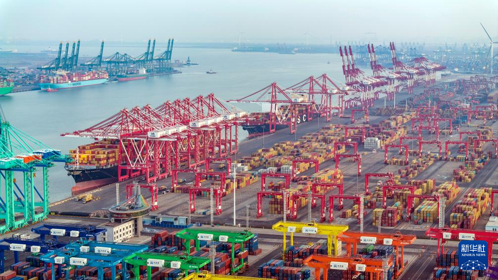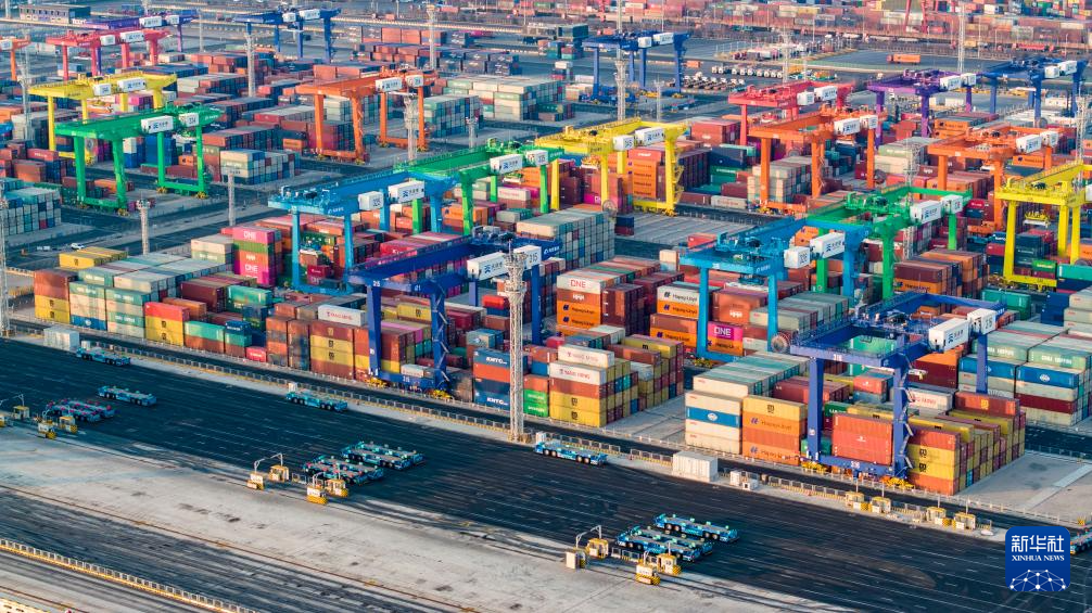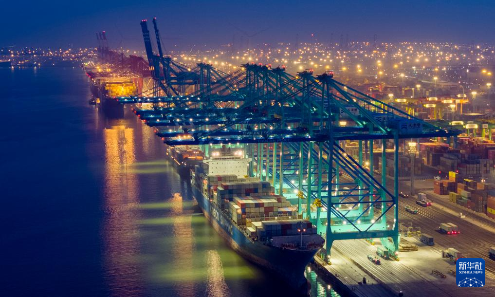 数据显示,天津港2023年完成集装箱吞吐量2217万标准箱,同比增长5.5%,创历史新高。