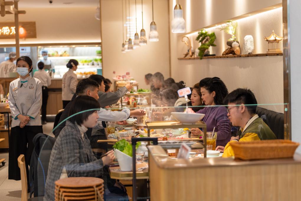 2023年11月26日,消费者在江苏省南京市一家商场内吃火锅。新华社发(杜懿摄)