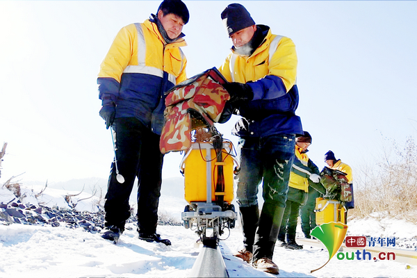 为了保证检查准确,每一寸钢轨都要检查到位,每一个钢轨接头,都要至少检查两遍,数据还要及时传给“回放组”进行二次数据检查。作业中遇到异常波形,他们就蹲在钢轨旁边,用手扒开雪堆,用小镜子查看轨颚或轨底有无伤痕。小镜子看不清时,他们就趴在冰冷的轨枕上,脑袋紧靠冰冷的钢轨,用眼睛仔细看,用小仪器进行认真复核检查。