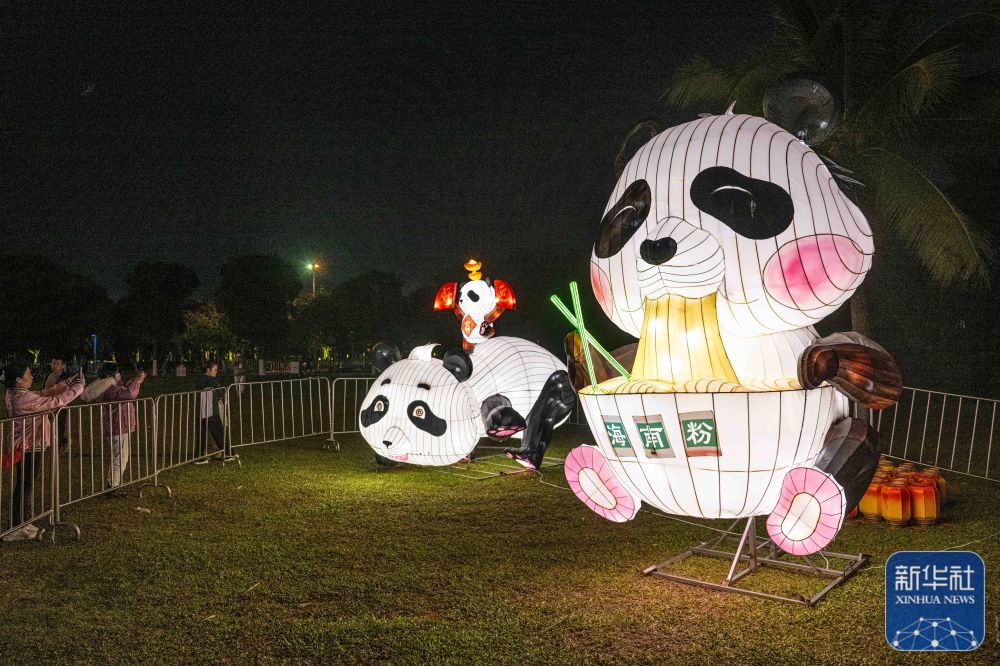 2月10日,游客在海口市万绿园观看万春会花灯。新华社记者 蒲晓旭 摄