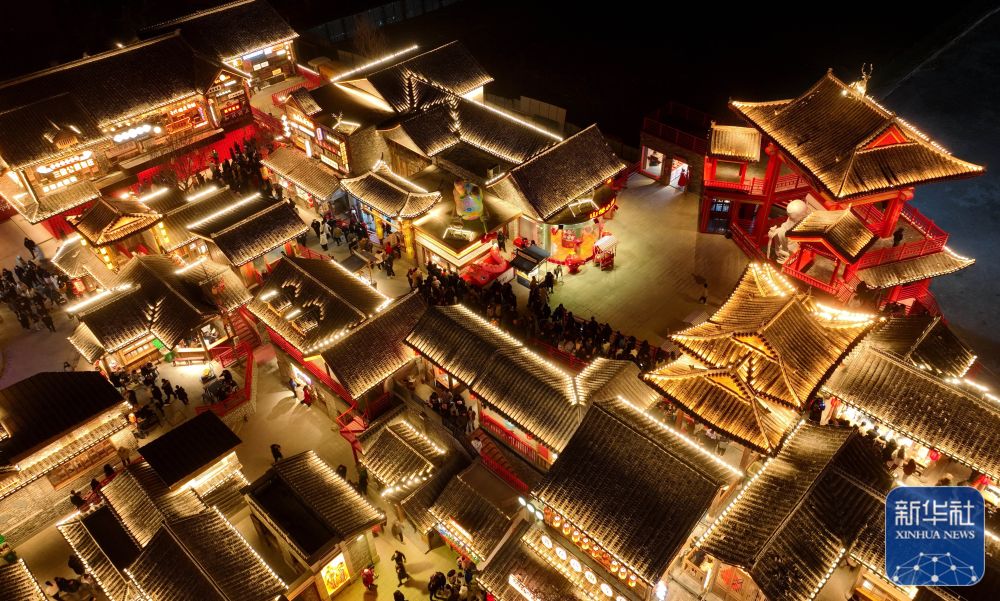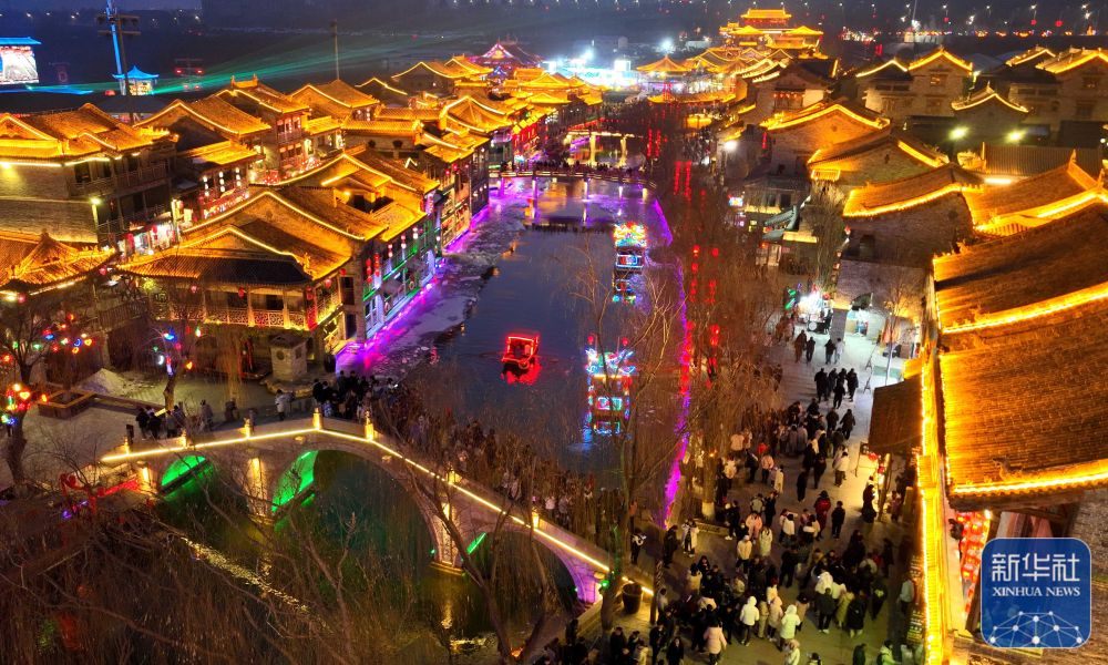 2月10日,游客在河北省唐山市丰南区河头老街观看文艺节目(无人机照片)。新华社记者 杨世尧 摄