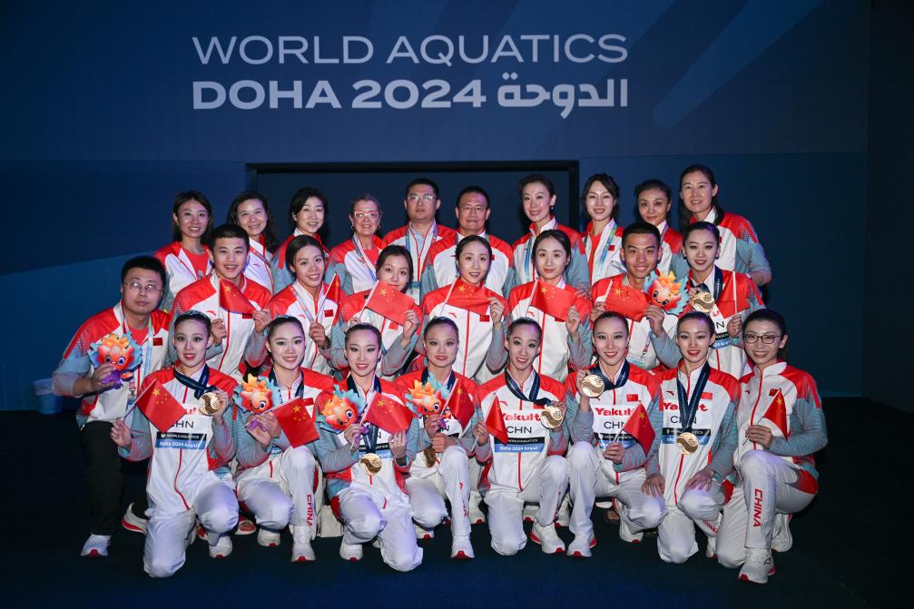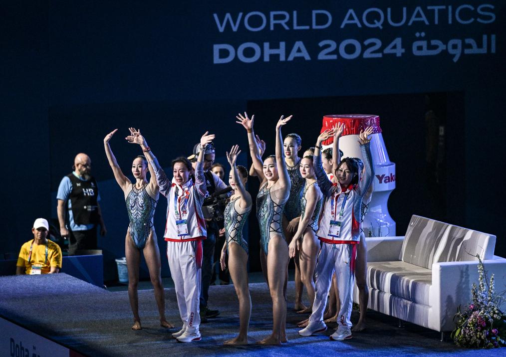 2月9日,中国队在集体自由自选比赛中获得冠军。新华社记者 夏一方 摄巴黎奥运会花样游泳设置双人和集体两块金牌