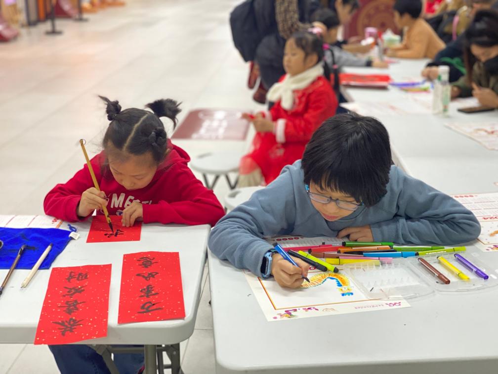 小朋友们在广西壮族自治区博物馆体验春节传统民俗。新华社记者 林凡诗 摄