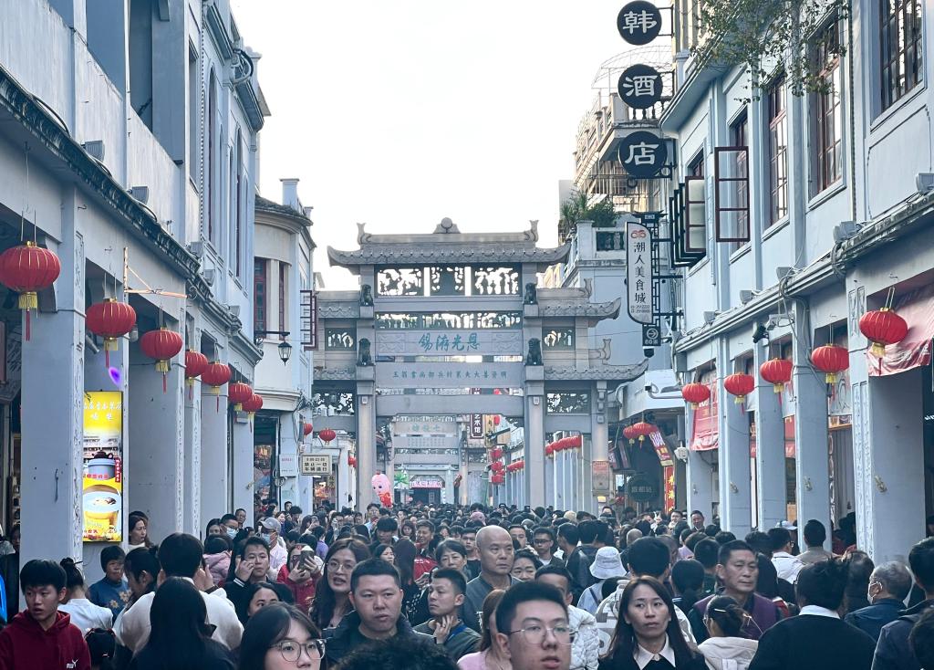“春节前每天取号也就到50号左右,但龙年新年第一天晚上7点就已经发了快200个号了。”一家牛肉火锅店店员告诉记者。牌坊街上一家饮品店的老板说:“这几年每到节假日人都很多,而且游客每年喜欢的都不一样。之前流行竹筒奶茶,今年改成带冒烟小茶壶的奶茶了,我们会相应做一些改变。”