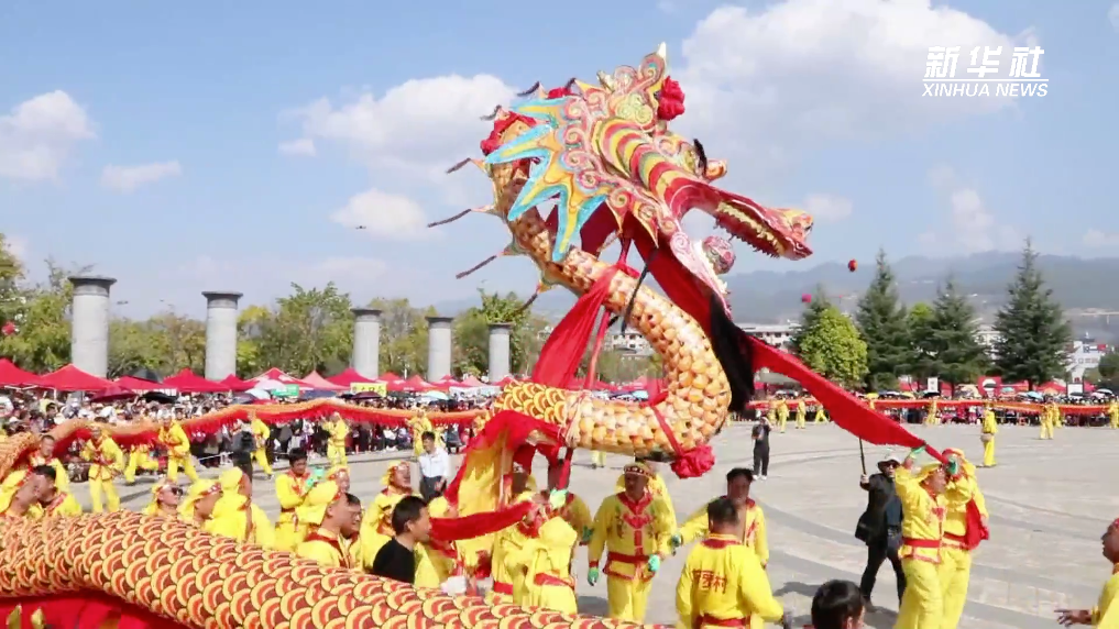 在云南省保山市施甸县,春节期间舞龙、舞狮的习俗由来已久,大年初一这天,3条百米长龙、6条小滚龙、4架狮子同台竞技,喜迎龙年的到来。