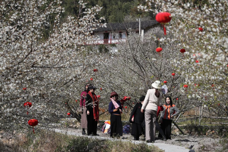 陈晨说,这座2层带小院、土木结构的建筑有11间房,赏花季“几乎天天满房”,赏花旺季餐饮等营业额通常增长40%至50%。冬日,坐在民宿近赏眼前一片白色“梅海”,行走在梅林步道,抬头就能闻到梅花清香;春天采摘青梅,体验亲手做青梅酒、酸梅汁……民宿为客人提供“可游可赏、可听可看、可品可尝”的多种选择。