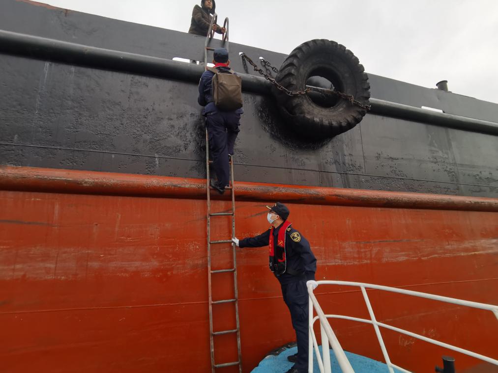 监管艇一路乘风破浪。冬天伶仃洋海面水位相对较低,待检的小型船舶与监管艇间高度差超过2米,要借舷梯辅助。海浪不停翻涌,管仁杰看准时机,“蹭”地攀上舷梯,手脚并用爬上待检的船只。“三个月前小管刚来时,几乎是一步一步挪上去。后来不断练习,爬起来毫无障碍了。”同事邹伟明说。