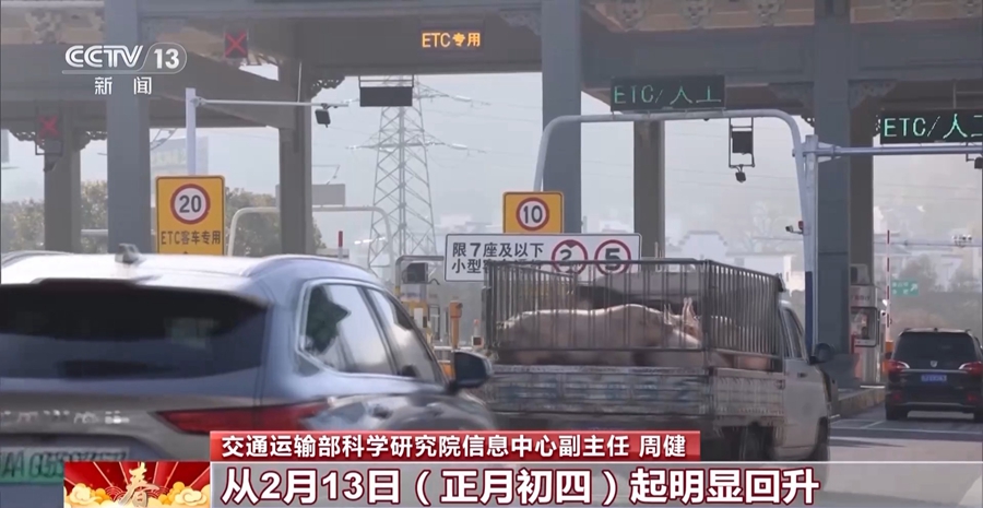 交通运输部科学研究院信息中心副主任 周健:预计返程客流从2月13日(正月初四)起明显回升,并在2月17日(正月初八)、2月25日(正月十六)出现“双高峰”。