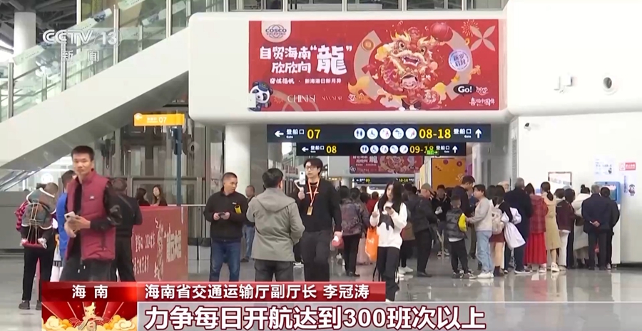 海南省交通运输厅副厅长 李冠涛:力争每日开航300班次以上,投入不少于6个班次新能源汽车专班,继续全面实施预约过海制度和开航前3小时车辆进港管理制度, 必要时协调北岸放空船舶,支援南岸抢运。