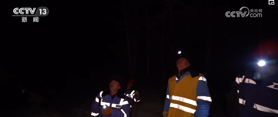 黑漆漆的森林里,付正强和队友们踩着没及脚踝的积雪走了3个多小时才抵达了检修地点。
