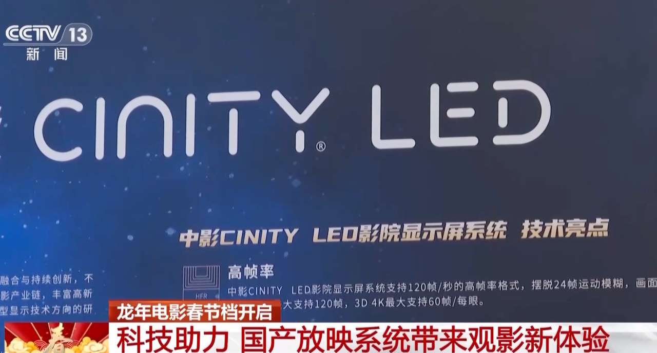 近日,由我国自主研发的影院显示屏系统亮相多家影院。这款名为中影CINITY LED的显示屏系统,具有我国核心自主知识产权,能使电影画面更清晰、色彩更绚丽、影像更流畅、细节更丰富、动作更连贯。