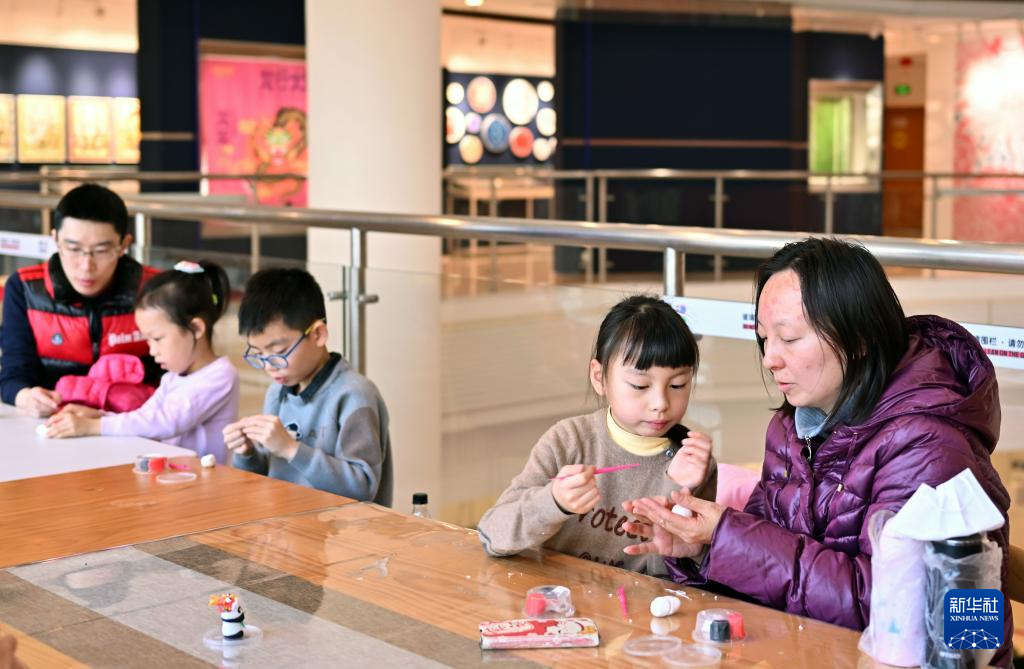 2月14日,在上海市群众艺术馆“非遗会客厅”,小朋友和家长在参与海派面塑亲子体验活动。新华社记者 刘颖 摄