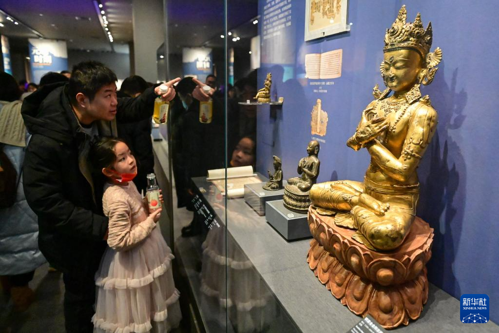 2月14日,参观者在新疆维吾尔自治区博物馆观看展品。新华社记者 丁磊 摄