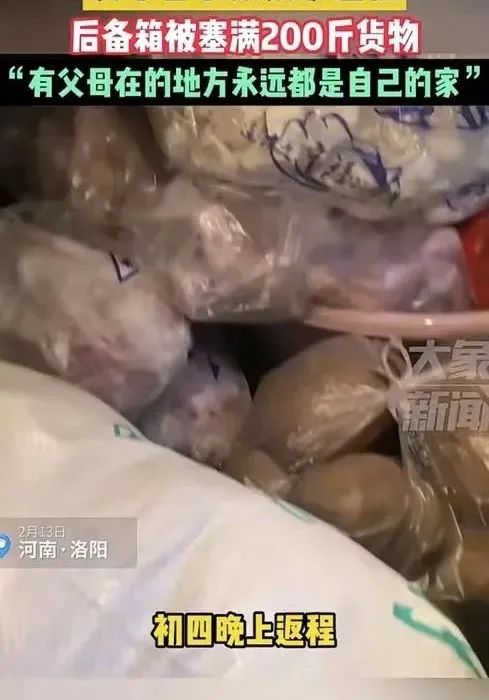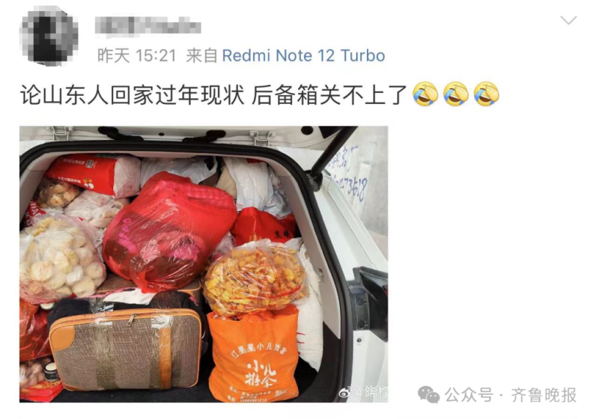 来源标题:山东妈妈给女儿塞60斤特产!一年一度后备箱大赛来了