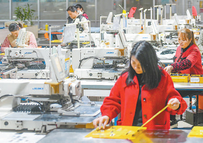正月初六,湖南永州市道县高新技术产业园区内,工人在流水线上工作。