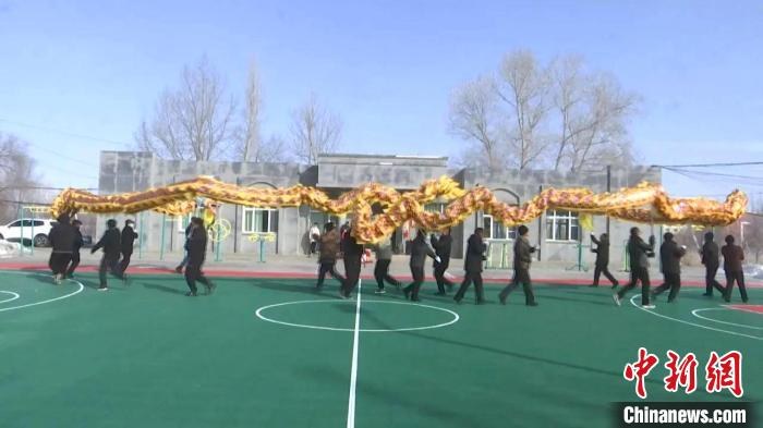 中新网乌鲁木齐2月17日电(陶拴科 石倩)连日来,新疆木垒县各乡镇锣鼓喧天,热闹非凡,群众排练春节社火,真正把农村文化活跃起来,村民在春节的氛围里沉浸式感受浓浓的年味。